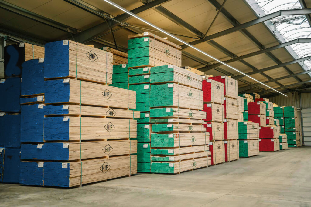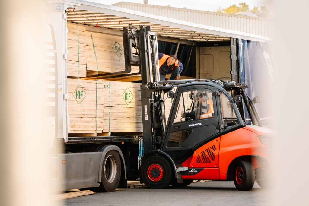 Unsere 1500 qm große Versandhalle ist optimal temperiert und gut klimatisiert. Das Holz ist gut sortiert: So kann es schnell gehen, wenn Bestellungen unseren Hof verlassen.